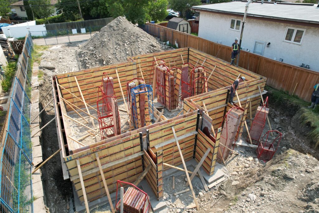 After footings cure, we set robust formwork to shape the foundation walls. Reinforcing steel is placed, then high-strength concrete is poured to fill the forms.